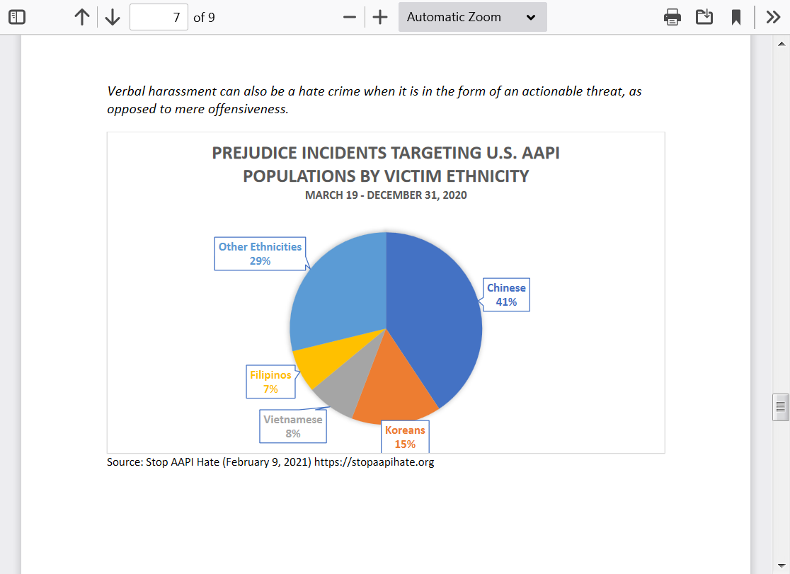 It was mentioned that the number of anti-asian hate crimes increased by 150%. I have no doubt about the accuracy of this number.