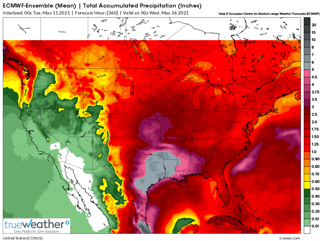 Rain forecast for 2 weeks from the just out Euro Ensemble