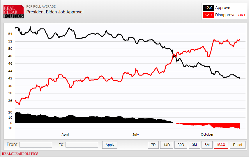 in addition the results of the latest right track/ wrong track show 15% of Americans think Biden has us on the right track
