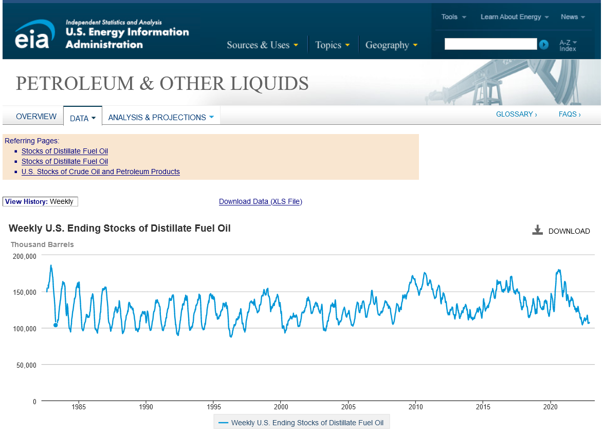 Heating oil supplies right now are the lowest in history for this time of year. This is bad news going into Winter/the heating season and leaves consumers in the Northeast that use heating oil to heat their homes at risk and will cause them to pay very high prices.