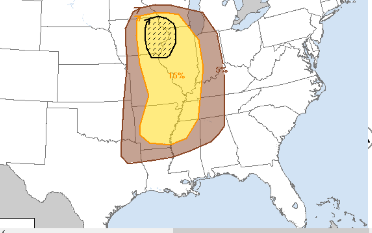 Tomorrow, the Storm Prediction Center will pin down the upcoming risks for Friday with more detail: