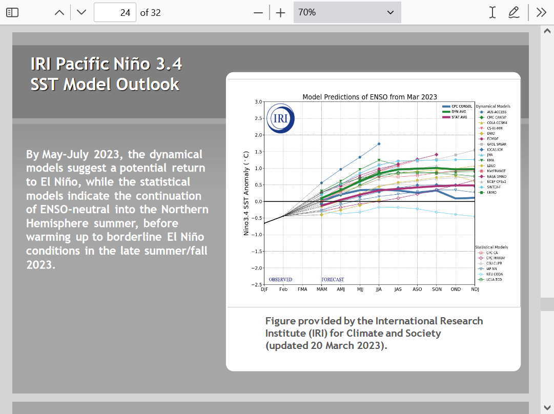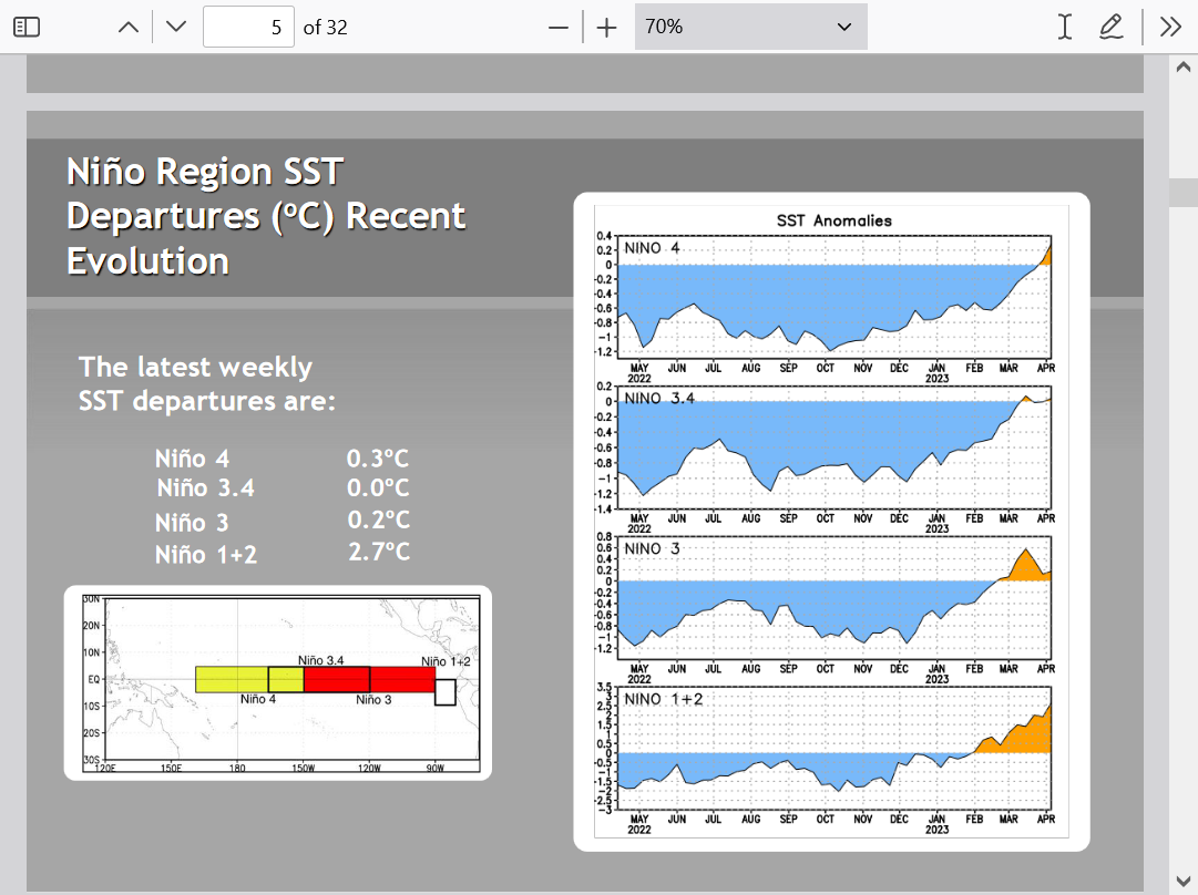 - Based on this, alone, the chances of a super Nino peak in 2023-4 are low.