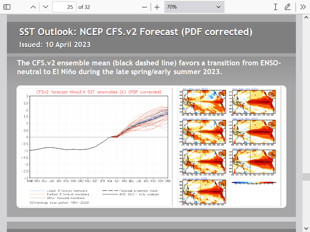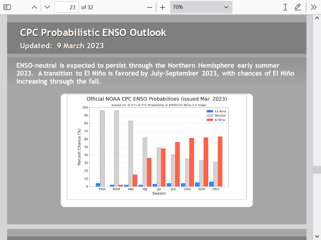 So, this also reiterates that 2023 being up at 88% is strong support for El Niño. The main inconsistency is the 2017 El Niño forecast fail. Thus, although I favor El Niño, 2017 keeps me humble and from betting the ranch this early.