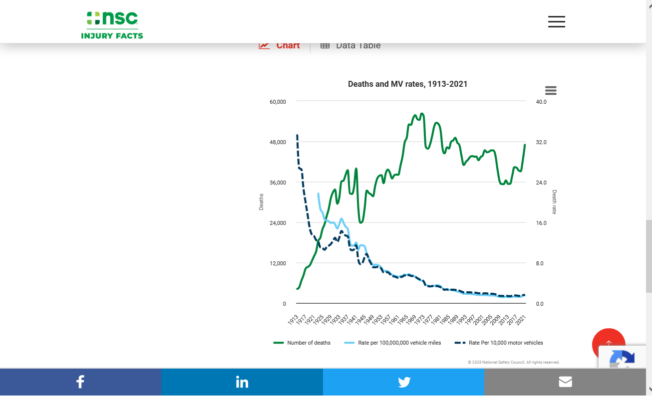 Between 1913 and 2021, the number of motor-vehicle deaths in the United States (which include all types of motor vehicles, including passenger cars, trucks, buses, and motorcycles) increased 1,018%, from 4,200 deaths in 1913 to 46,980 in 2021. However, the role cars play in daily life is vastly different now than when tracking began.