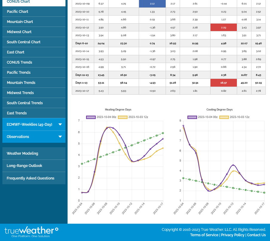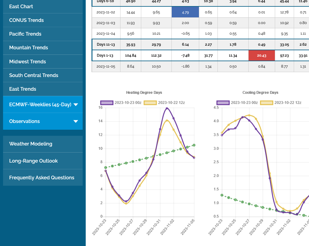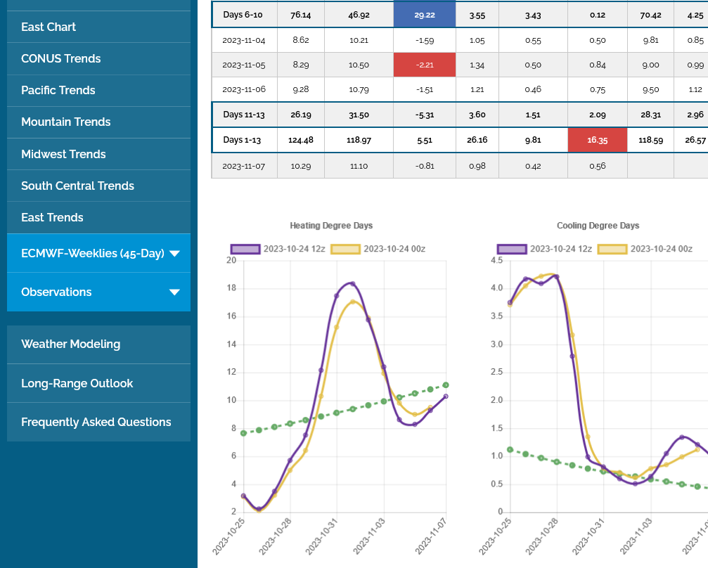 The 0z models were a paltry +2 HDDs but the 6z GEFS was +8 HDDs on top of that. However, the overall pattern in mid November still turns very mild. Weather is not likely the driving source here!