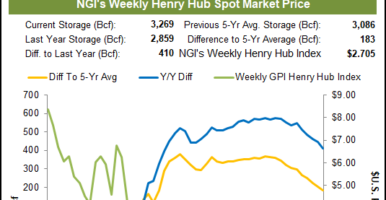 Natural gas futures rallied again Thursday, gaining ground a fourth time this week as government inventory data signaled that gradually emerging heating demand and stronger LNG volumes are offsetting robust production – with winter looming. The November Nymex gas futures contract spiked 20.4 cents day/day and settled at $3.214/MMBtu. December, which takes over as the…
